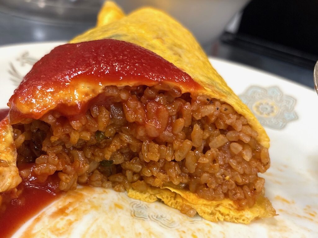 ケチャップはかなり多めで、しっとりしているね。味はかなり濃いので、オツマミとしても良い気がする。