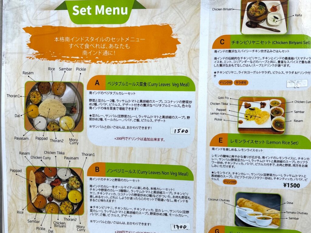 ビリヤニやドーサセットみたいなのもあるど。