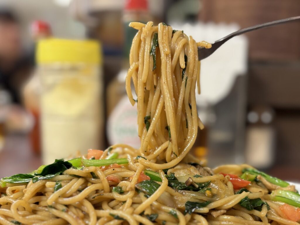 パスタは途中まで作り置きしているやつを炒めたりしているからか、おもちゃっぽい不思議な食感。