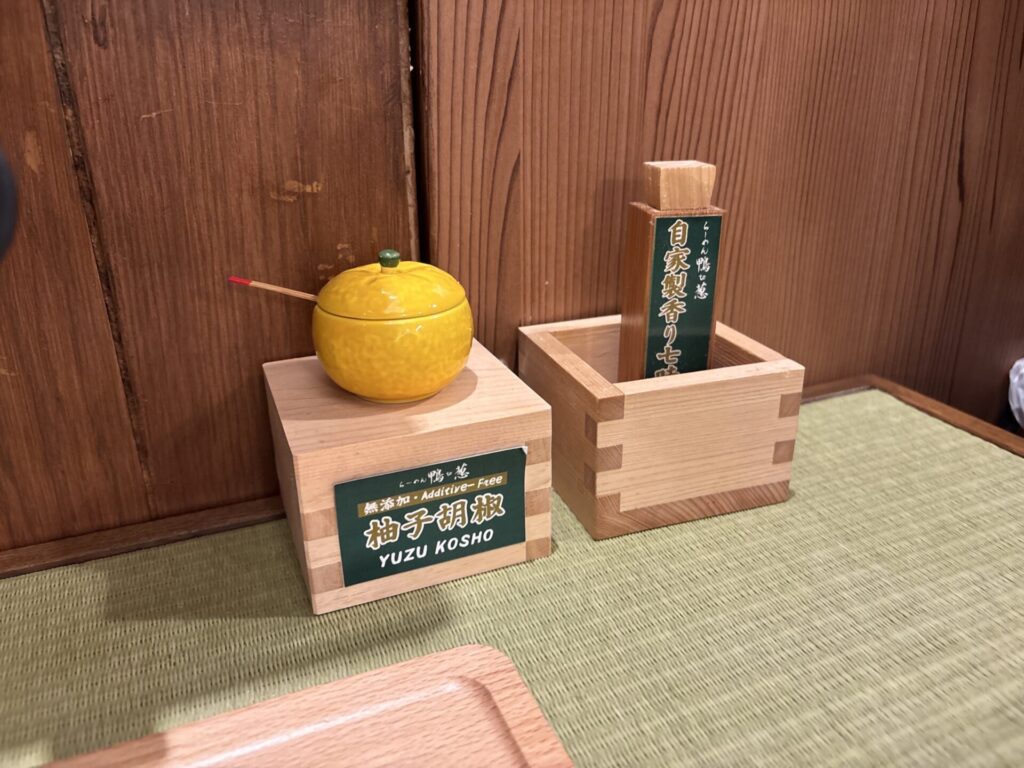 柚子胡椒と七味がある。