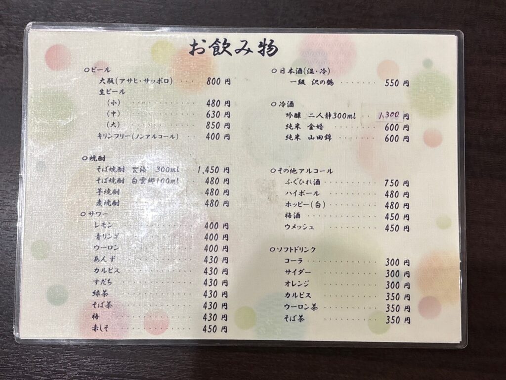 お通しの揚げそばの値段は不明だが、『日本酒(600円)』、『肉じゃが(530円)』、『やっこ(350円)』、『天もり(1150円)』の『大盛り(150円)』を注文しても2,800円くらい!