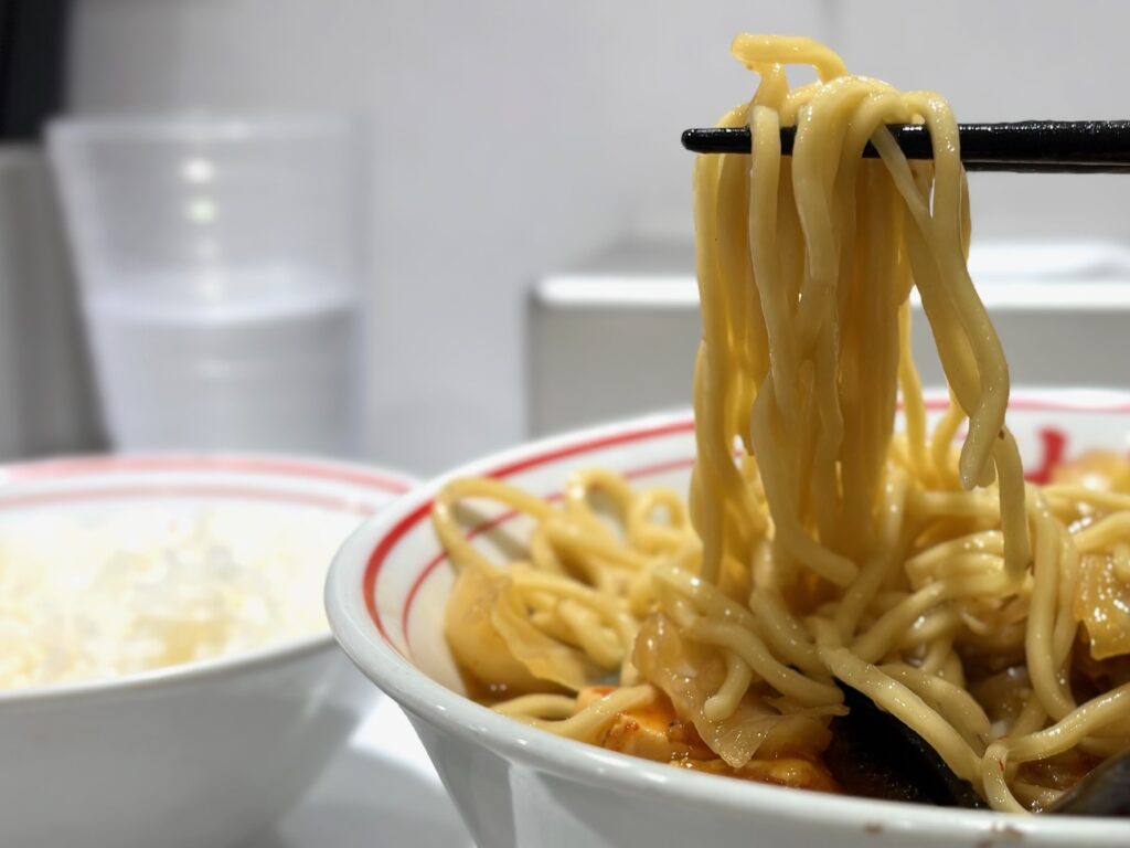ポキポキまでいかないけど、割と歯応えのある麺だよ。