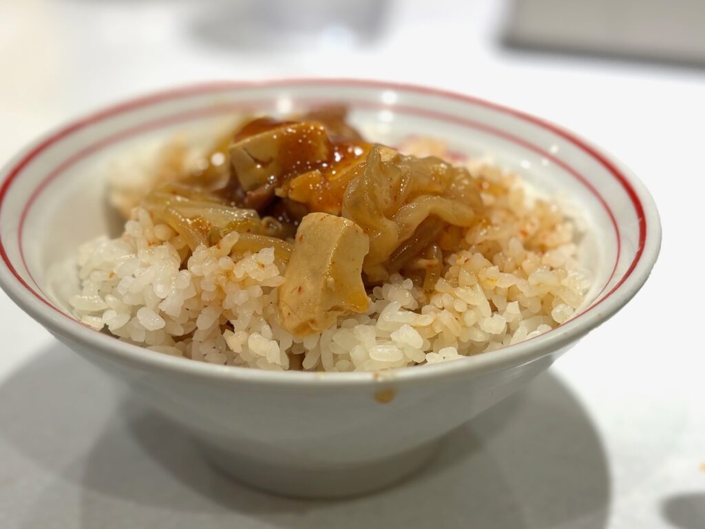 むしろ麺との相性よりも、辛くも甘味のあるスープと豚肉をライスとの相性の方が好き。