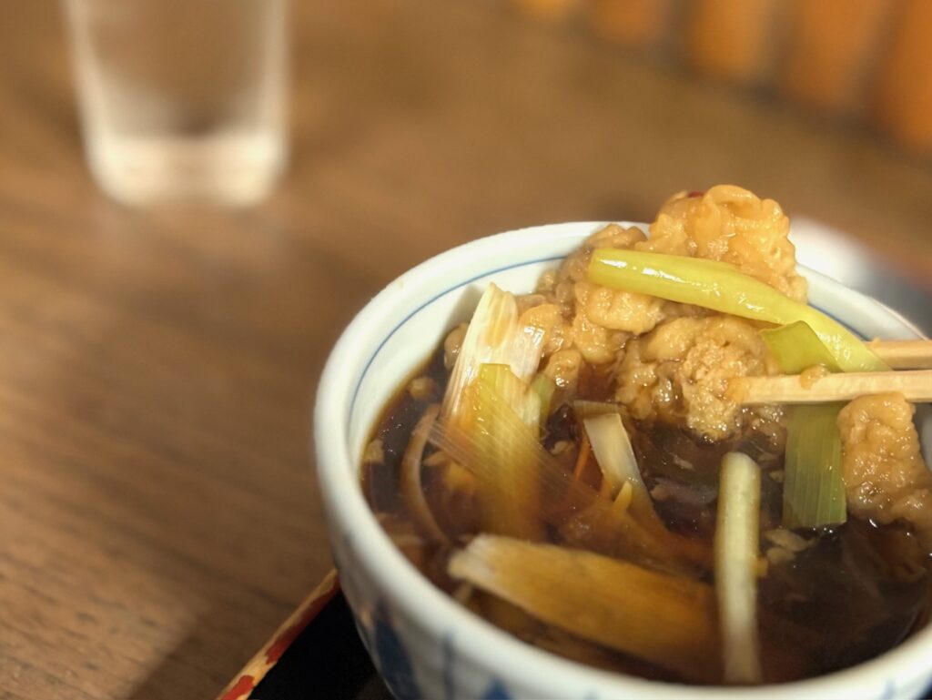 葱しか入っていないのかと思いきや、中には細かく切られたイカのかき揚げみたいなものがガッツリ入っている。