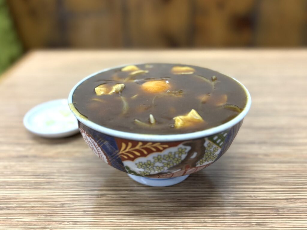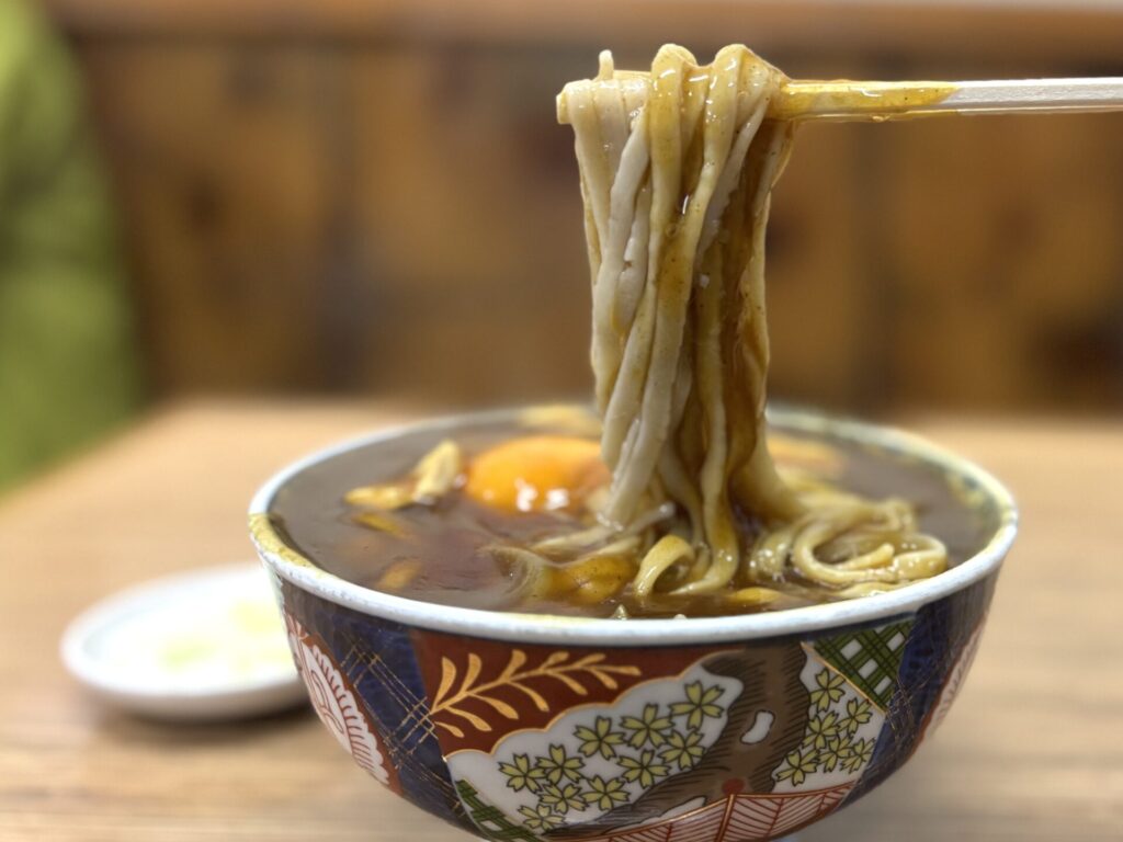 ギョクオチって言っている人が居たから、同じ浅草の角萬さんみたいな注文ができんのかなって思って「カレー南蛮大盛りのギョクオチでお願いします」って言ったら、「大カレーの『ギョクオトシ』ねッ」って言われて、恥っっ!てなった。