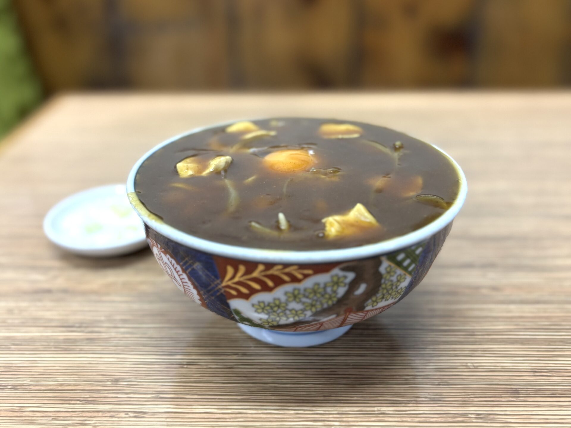 味のある外観と内観で食べるザ・カレー南蛮は食べるのが難しいが食べる価値のある一品だよ。