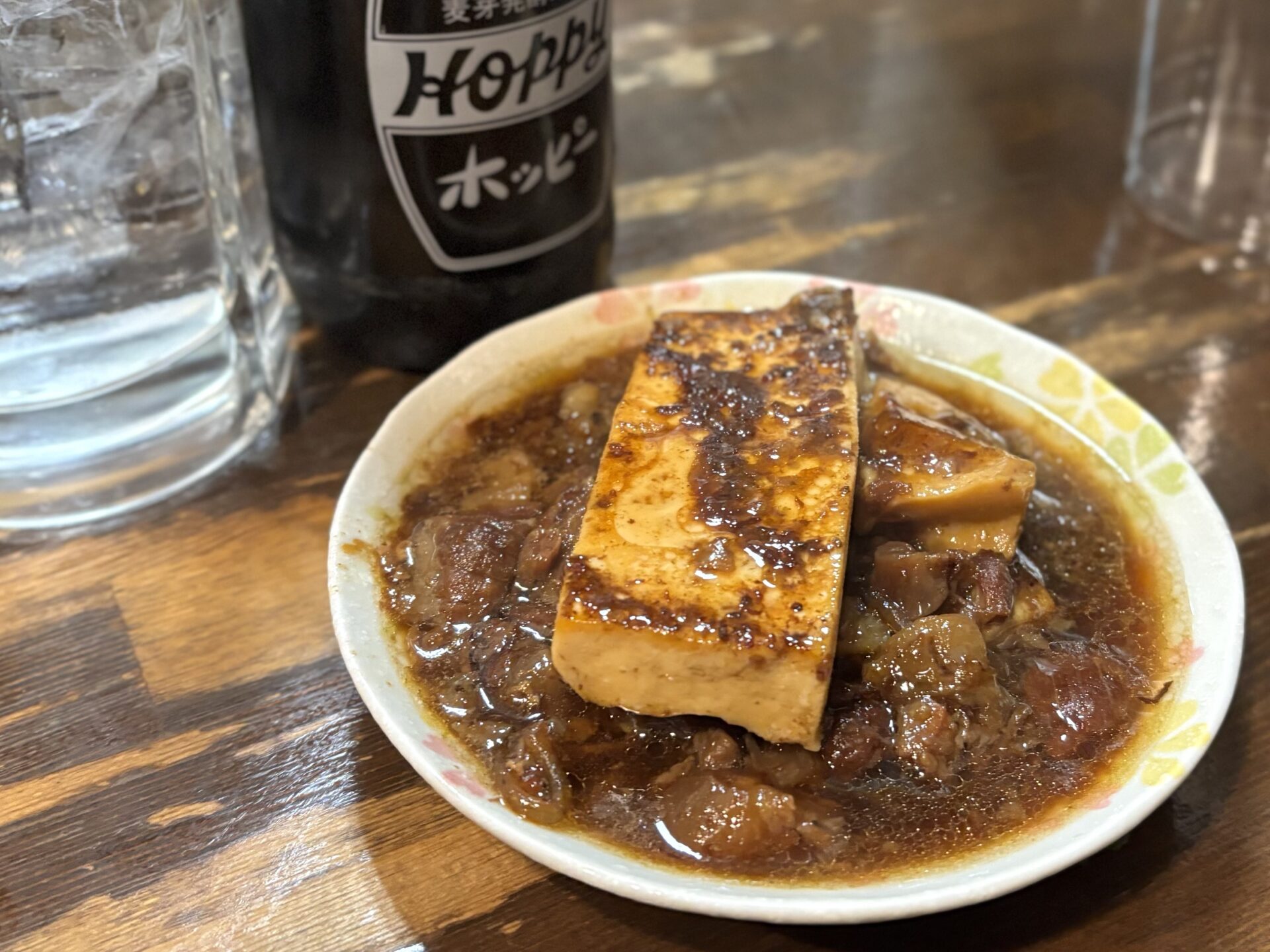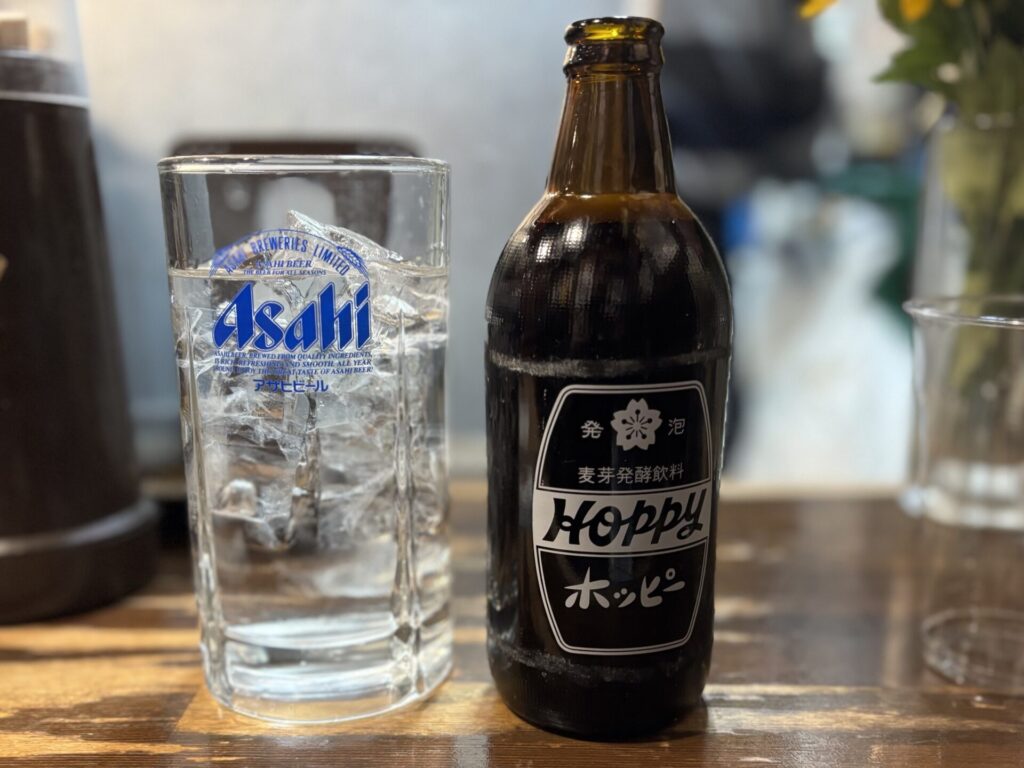 最近白に戻ったけど、ここの煮込みは味が濃いめなので黒ホッピーが最高に合う。