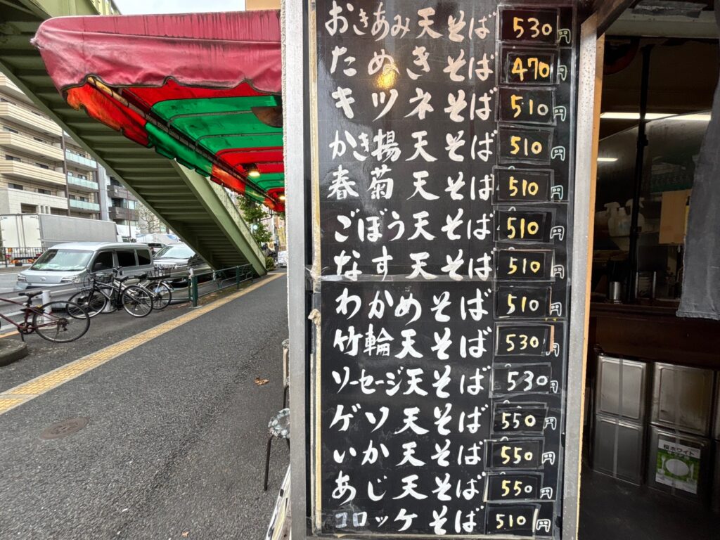 そば千【馬喰町駅】深夜2時開店!漆黒のつゆとあみ天がクセになる!価格も味も大満足の立ち食い蕎麦屋。